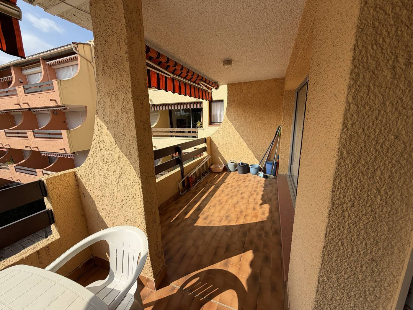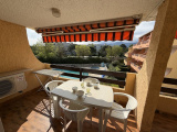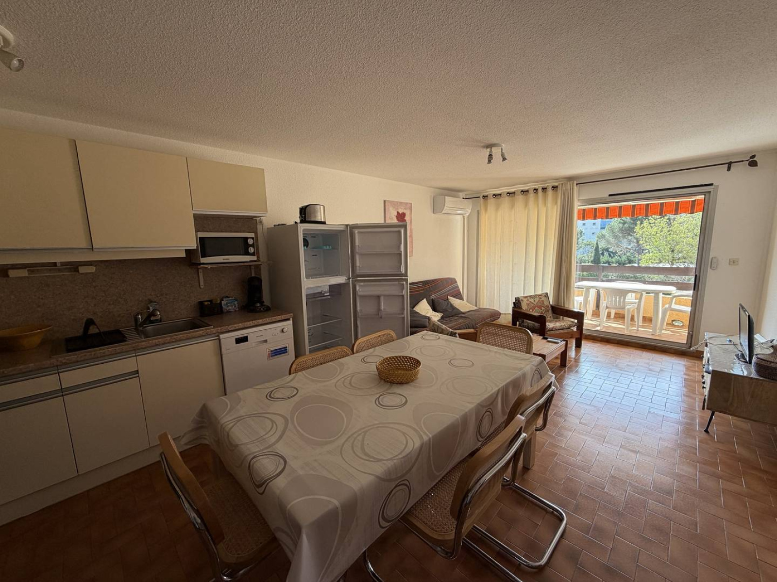 Séjour : TV, accès au grand balcon avec vue sur la piscine