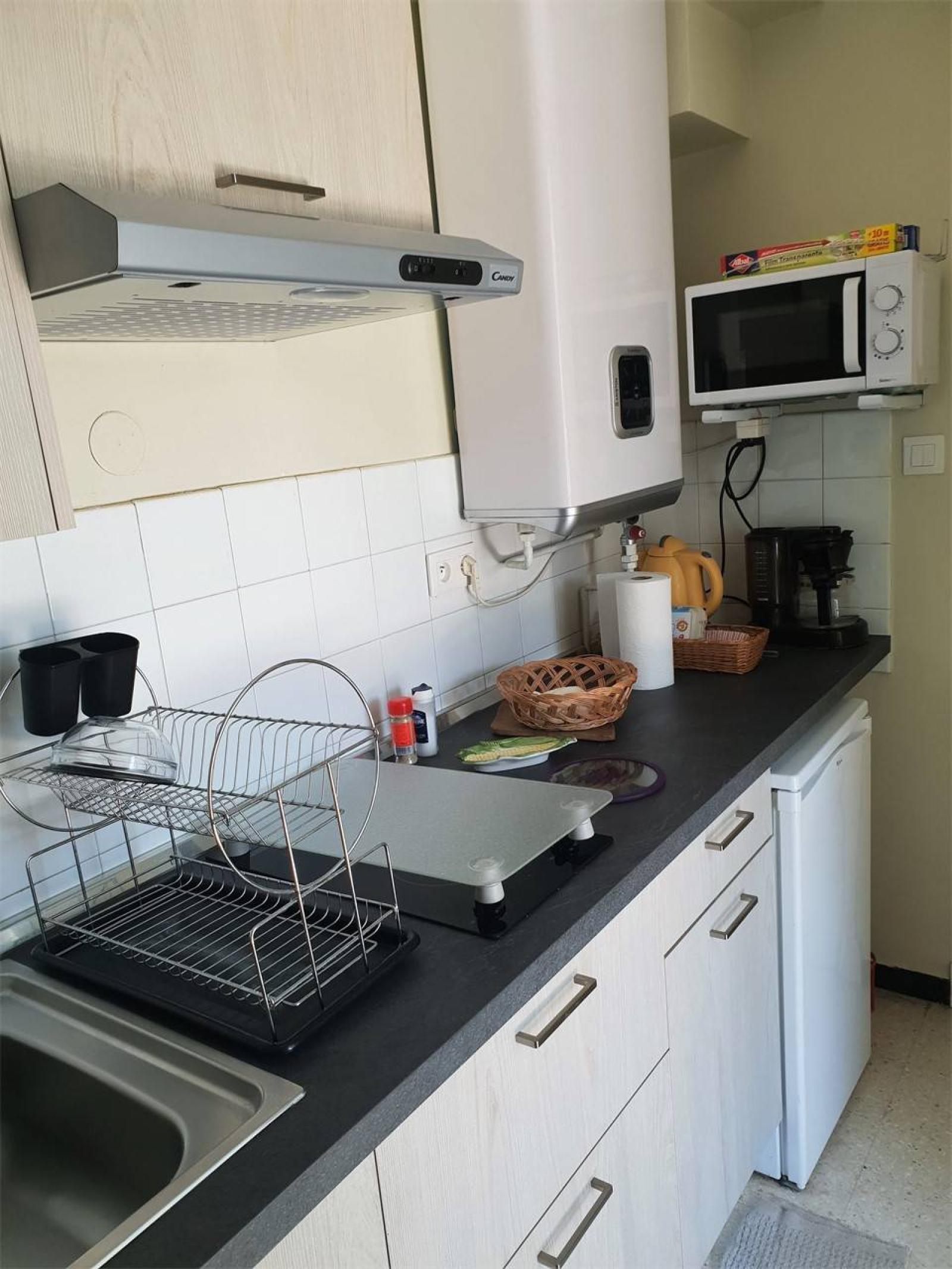 Cuisine indépendante récente : Plaque vitro-céramique 2 feux, mini-four, micro-ondes, réfrigérateur top