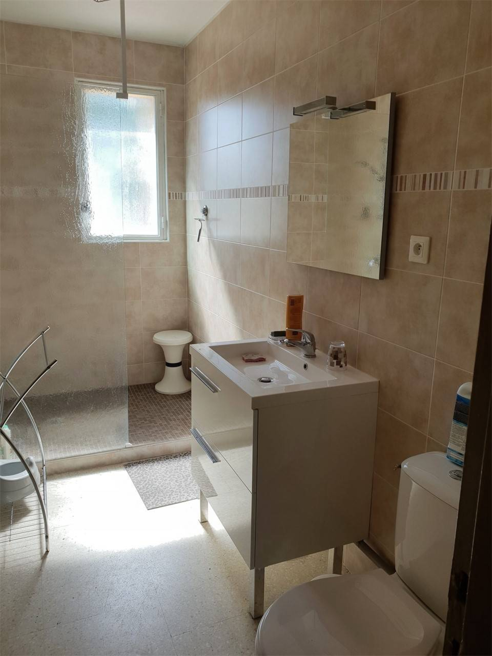 Salle d'eau spacieuse : Grande douche, lavabo, WC pour plus de confort