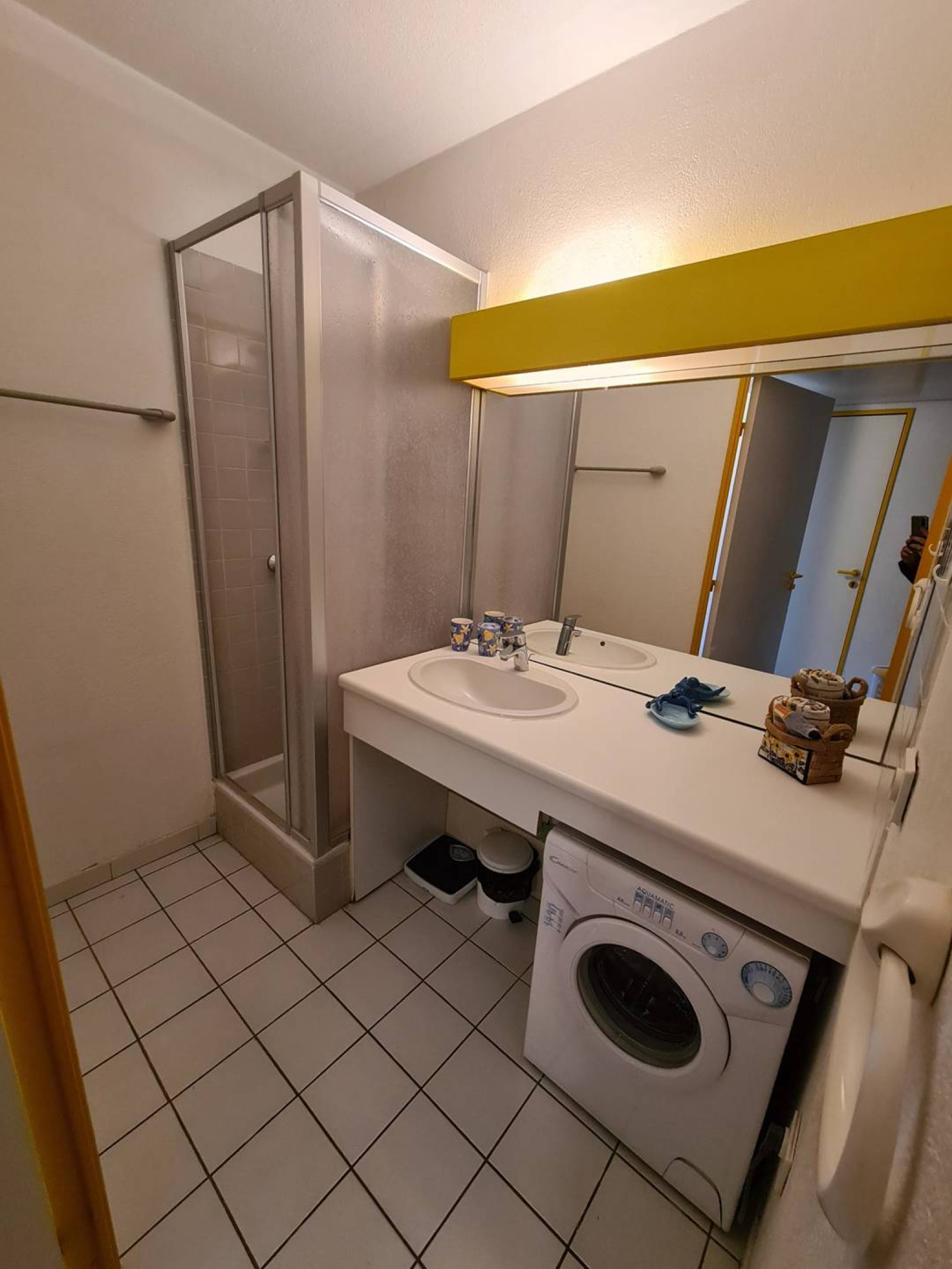 Salle d’eau avec lave-linge, idéale pour des séjours prolongés.