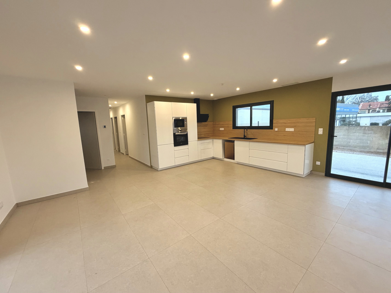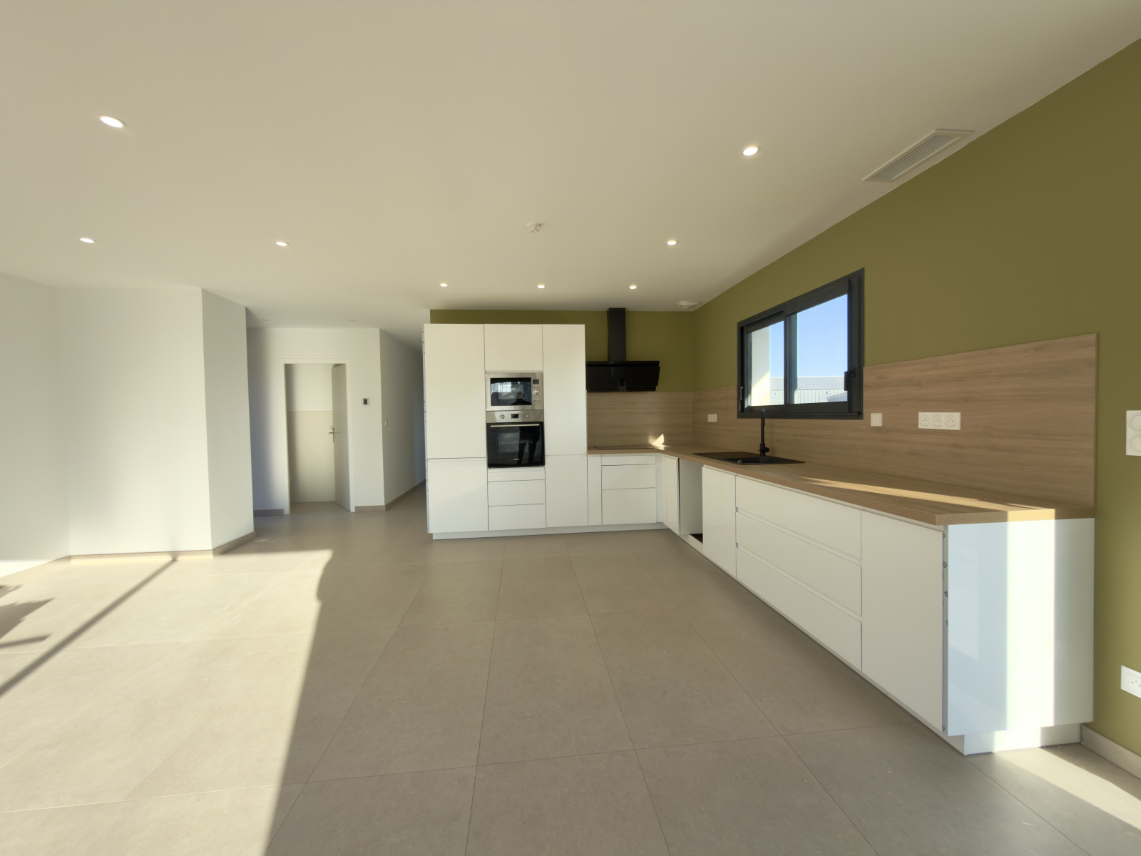 Un grand séjour lumineux avec cuisine ouverte, entièrement aménagée et équipée