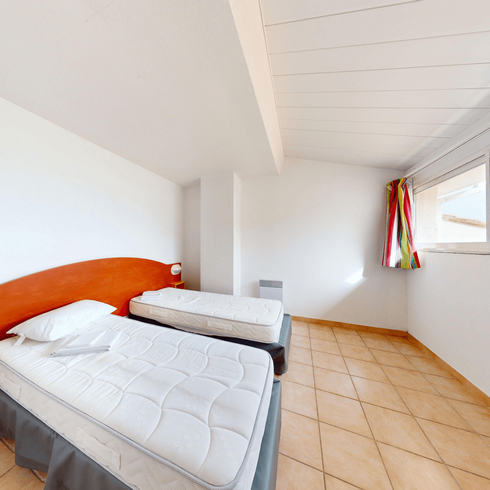 L’espace nuit du premier niveau propose une chambre confortable avec placard, bénéficiant elle aussi d’un accès direct au balcon, ainsi qu’une salle d’eau avec WC. À l’étage, une seconde chambre avec placardet une salle de bains avec WC, offrant un agencement idéal et fonctionnel.