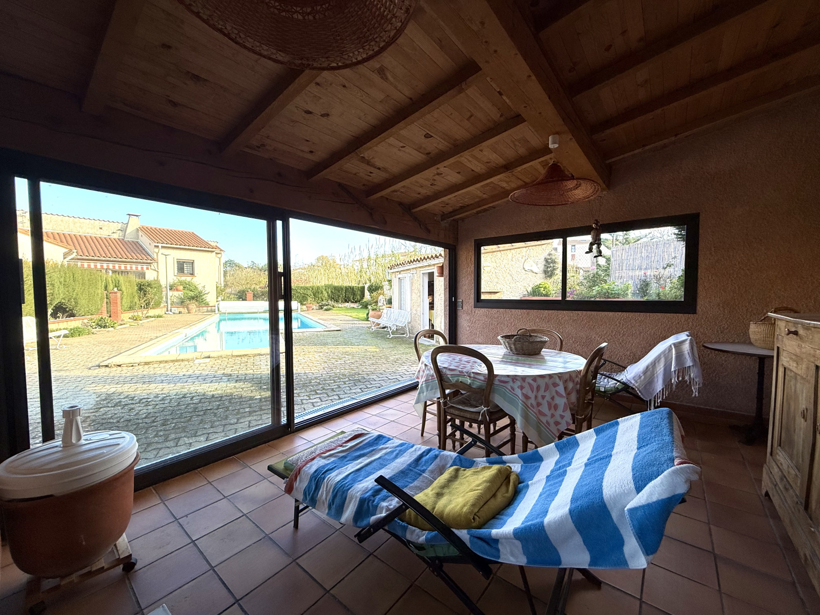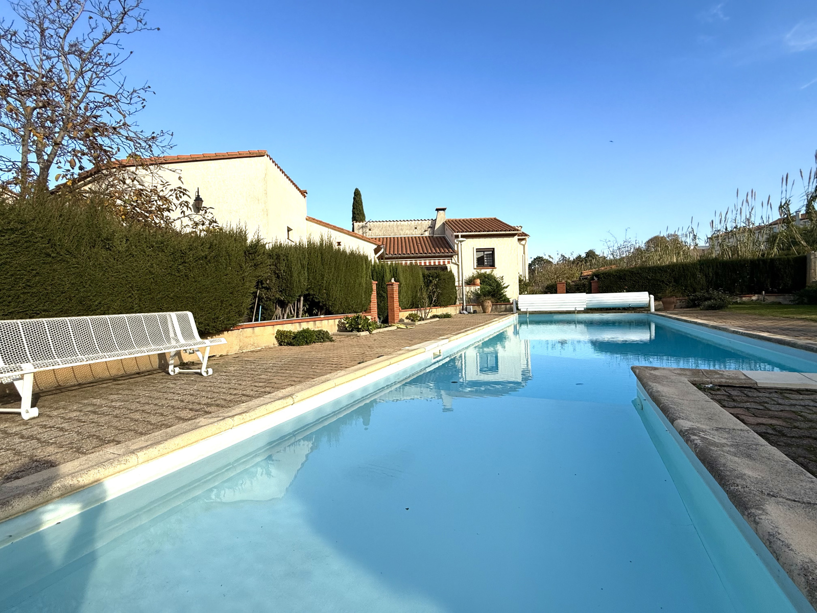 Le jardin est arboré et paysagé et la villa dispose d'une belle PISCINE avec un POOL-HOUSE, une cuisine d'été, un coin barbecue et une dépendance d’environ 11 m² !