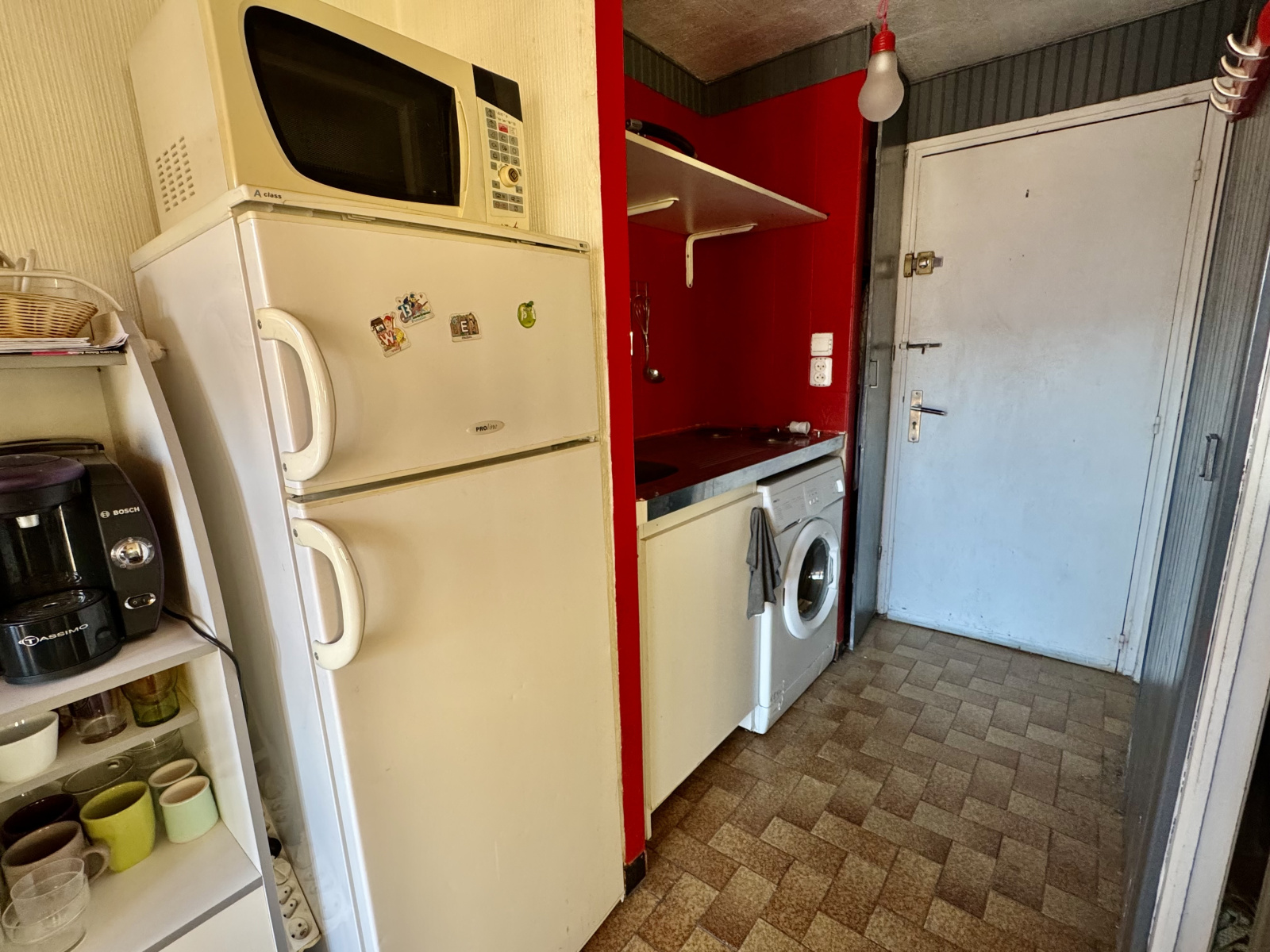 Il se compose d’une entrée, d’une kitchenette, d’une salle d’eau, de WC séparés, ainsi que d’un séjour lumineux ouvrant sur une belle terrasse de 9 m² exposée Ouest.