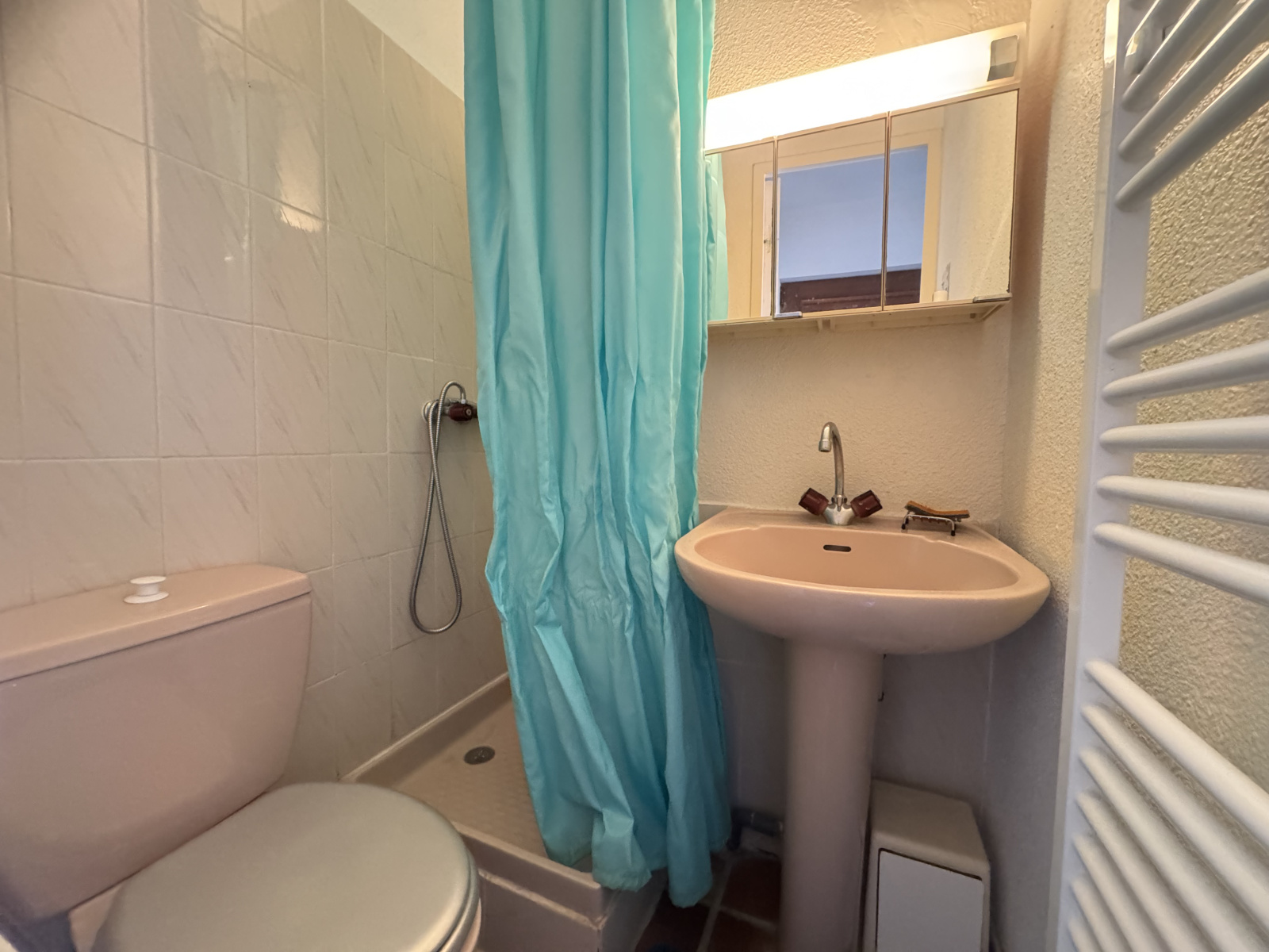 D’une surface de 22 m², ce studio cabine est situé au 3ᵉ et dernier étage. Il se compose d’une entrée, d’une salle d’eau avec WC, ainsi que d’un séjour lumineux avec kitchenette ouvrant sur un balcon exposé Est, offrant une agréable vue sur la mer. Vous trouverez également une cabine, et à l’étage, une grande mezzanine d’une surface de 3,80 m² Loi Carrez (pour un total de 12 m² hors Carrez).