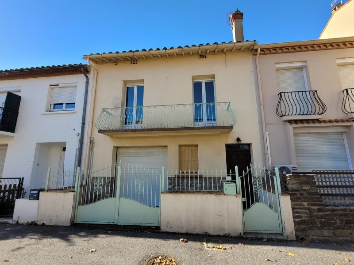 Argelès, Maison de Ville Traversante T5 R+1, 87m², composée d'une entrée, deux chambres dont une avec sortie sur terrasse, wc lave-mains, grand garage, à l'étage dégagement, séjour-cuisine ouverte ouvrant sur balcon, cheminée averc insert (tubée), 2 chambres, salle d'eau. Terrasse sans vis-à-vis. Garage indépendant. Double vitrage, volets roulants électriques. Exposée Est Ouest, environnement calme.