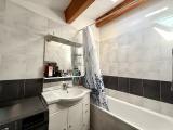 À l’étage vous trouverez une grande chambre avec poutre apparente et une salle de bains.