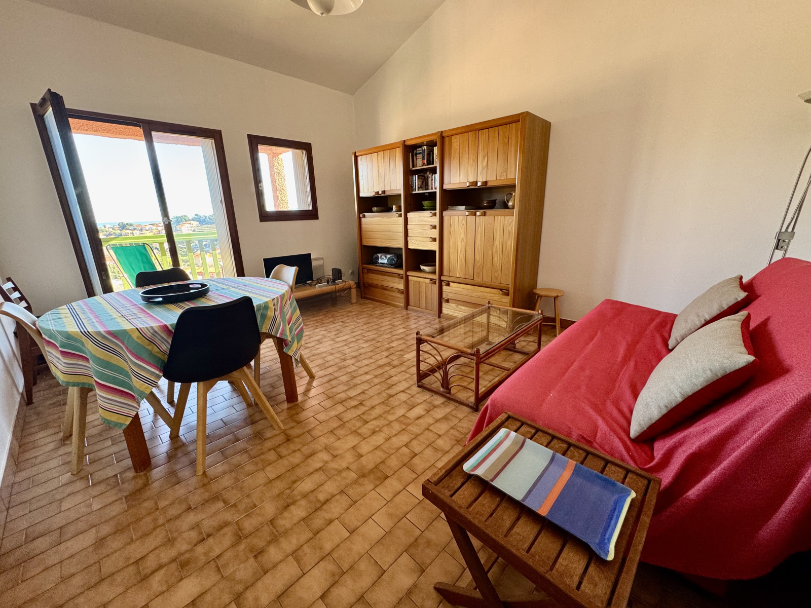 Il se compose d’une entrée, d’un coin cabine, d’une chambre avec placard, d’une salle de bains, WC séparé, d’une cuisine indépendante, ainsi que d’un séjour lumineux bénéficiant d’une belle hauteur sous plafond. Le séjour s’ouvre sur une terrasse exposée Est, offrant une vue dégagée sur la mer, le Fort Saint-Elme et les Albères.