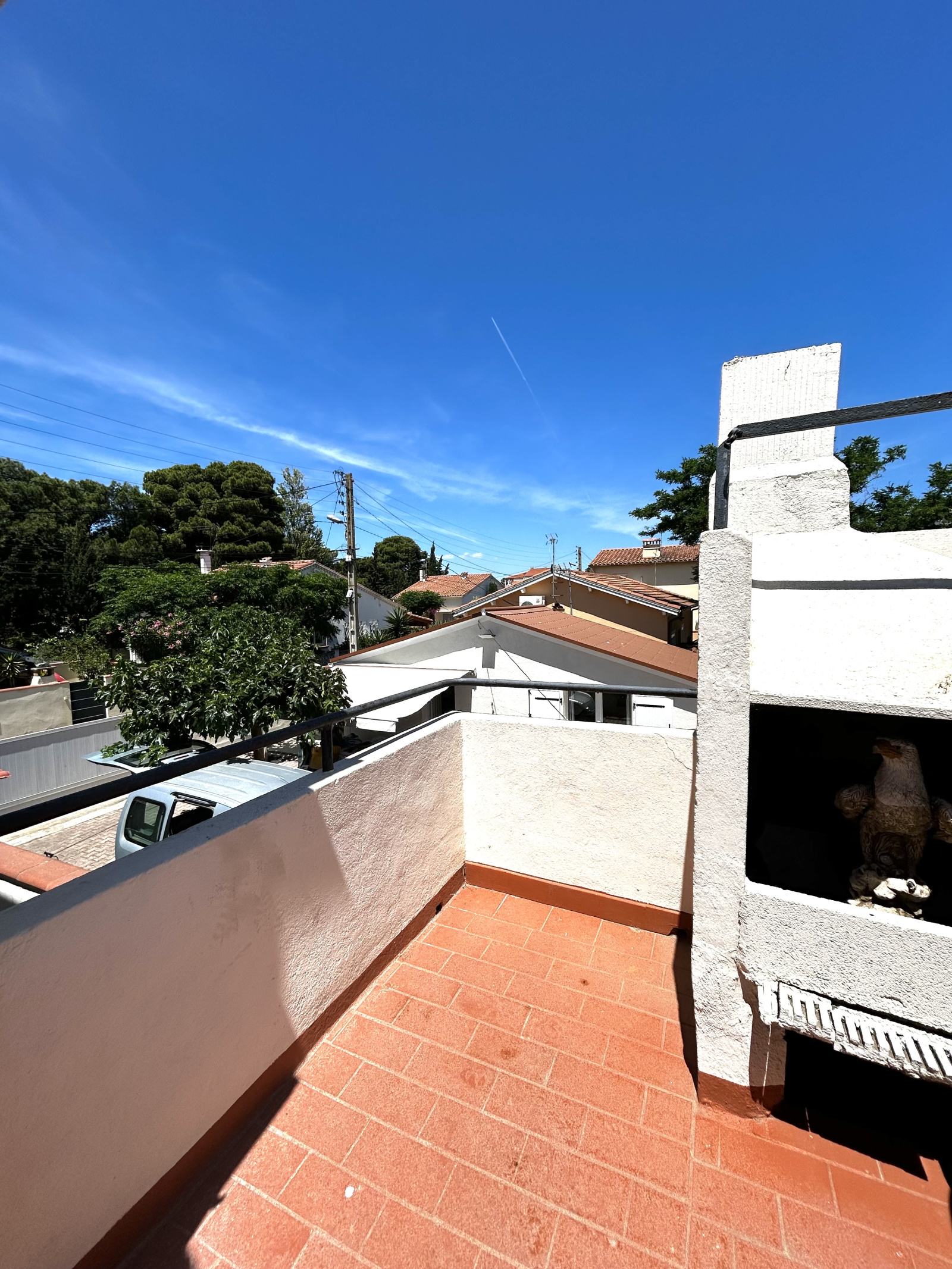 A l'étage vous disposerez d’un séjour lumineux avec cuisine ouverte d'environ 28 m², équipée et aménagée, d'un grand balcon et d'une terrasse d'environ 20 m² SANS VIS-A-VIS avec coin barbecue.